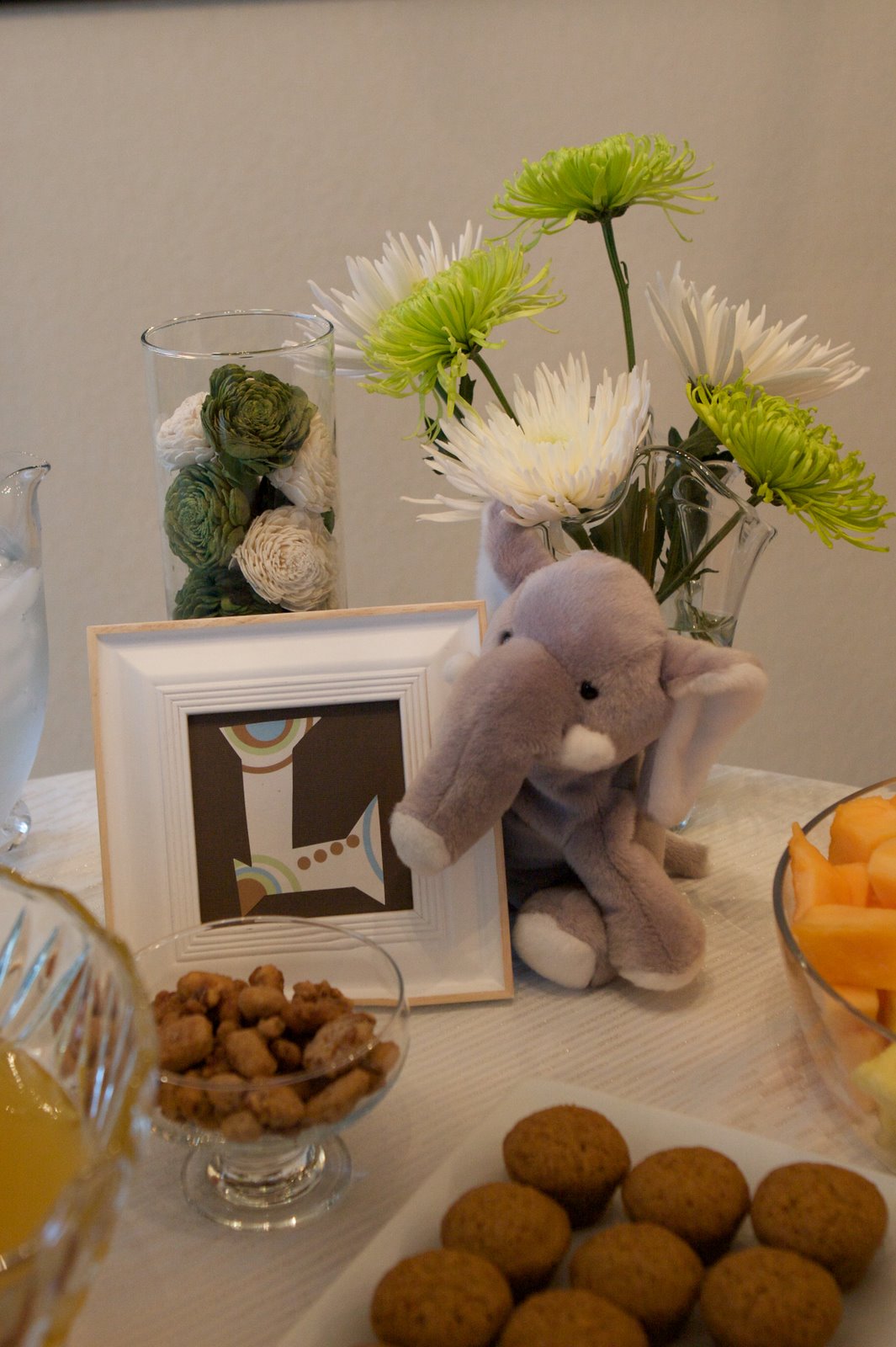 My dear friend Nan is going to be a Mama, really, really soon!! It is just over a month until little Leyton graces us with his presence and I am so excited! Can’t you tell with all of the “!”? This past Saturday I hosted a shower for Nan and the little guy out at her place. I am not sure that hosting a shower at the guest of honor’s house is really PC, but I wanted for everyone to not have to drive too far. Her husband is a saint and cleaned the house before everyone got there, I really do feel badly about that- sorry Jeremy. It was a great time, the ladies in attendance were such a hoot (Nan is blessed to work with such great people) and I had a ton of fun decorating and planning for it. I have attached a few pics for you to enjoy however, if you would like to see more check out my picasa site at http://picasaweb.google.com/kristen.perreault/NanSBabyShower#